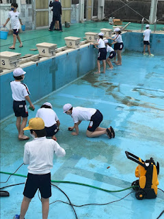6月7日に5・6年生がプール掃除をしてくれました。1年間の汚れを落とし、水泳の学習のために掃除をしてくれる姿がとても頼もしくて嬉しくなりました。さすが、自慢の高学年です。感染症対策をしながら安全に水泳の学習をします。